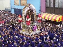 From the 18th to the 28th is El Señor de los Milagros (The Lord of Miracles), the most important of all the Peru holidays in October. This is largely a procession in honor of a slave from Angola who drew the image of a black Christ in Pachacamilla near Lima. Although there had been several attempts to erase it, the image stubbornly stayed on the wall. Tens of thousands participate in the procession every year. Believers carry two tons of remains that bore the painting and walk for twenty-four hours starting from the church Las Nazarenas, through downtown Lima, and finally to the church La Marced in Barrios Altos. Bullfighting season also starts in October to commemorate The Lord of Miracles.